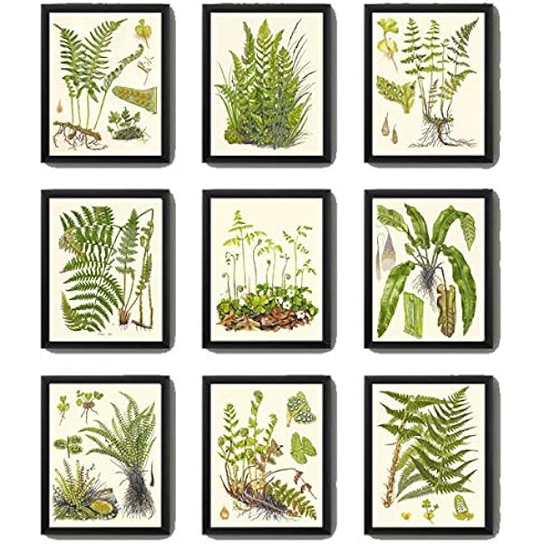 Amazon Com Botanical Set Of 12 Prints Unframed Antique Beautiful Ferns Green Forest Nature Home Room Fern Decor Wall Art Handmade Products